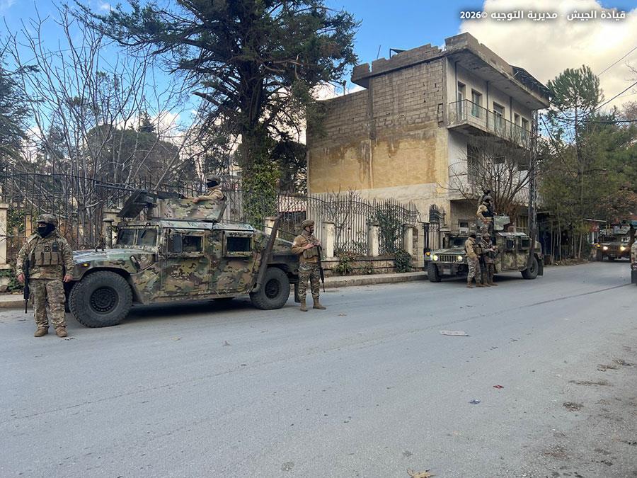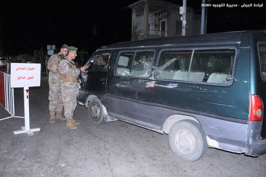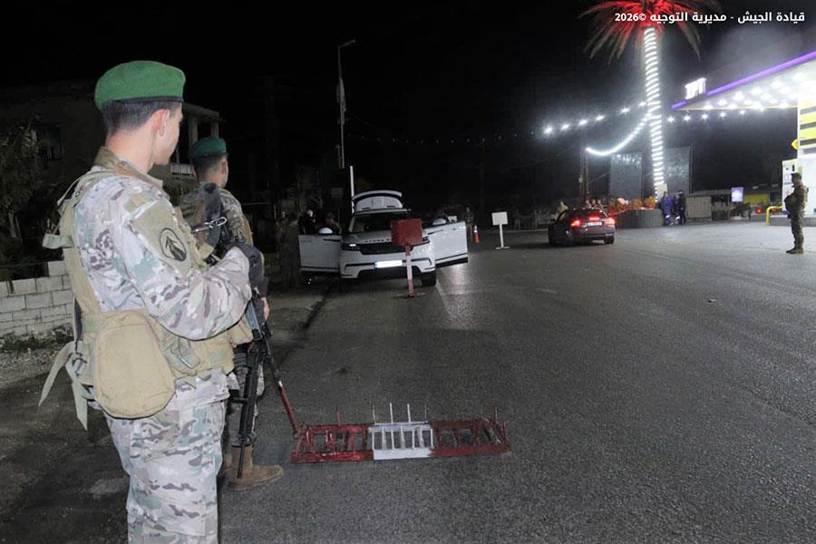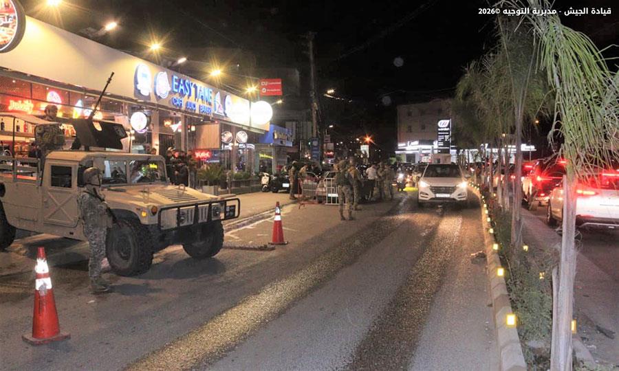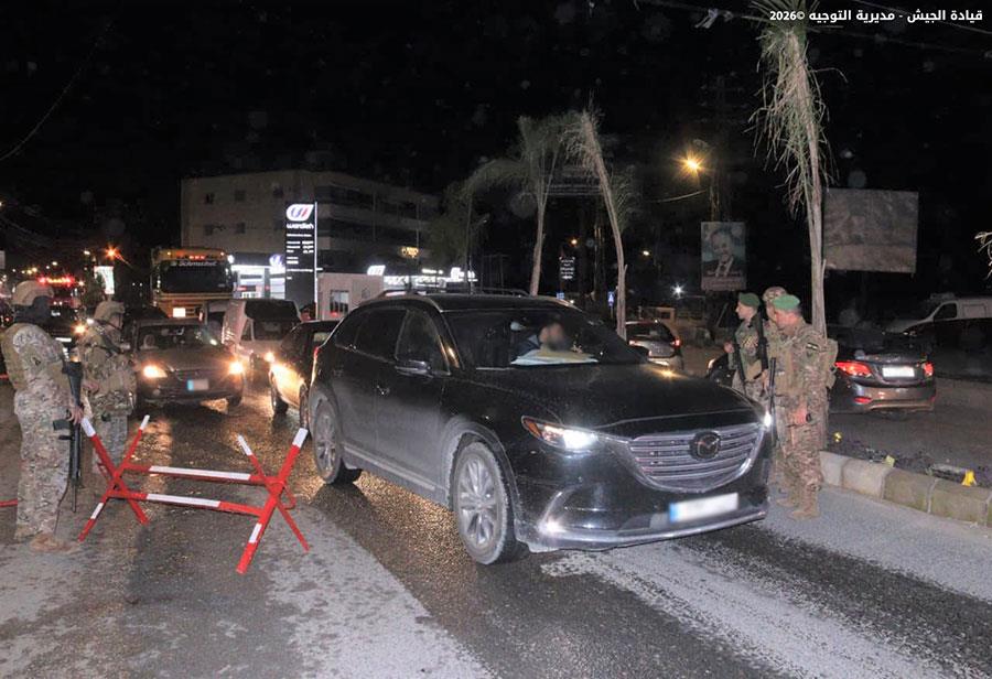 ضمن إطار التدابير الأمنية الاستثنائية التي قامت بها المؤسسة العسكرية في مختلف المناطق لملاحقة المخلين بالأمن، خلال عيد رأس السنة، نفذت وحدات من الجيش تؤازر كلًّا منها دورية من مديرية المخابرات تدابير أمنية واسعة، شملت عمليات دهم ودوريات راجلة ومدولبة وحواجز ظرفية، أسفرت عن توقيف ١٩ مواطنًا وفلسطينيَّين وفقًا لما يلي: