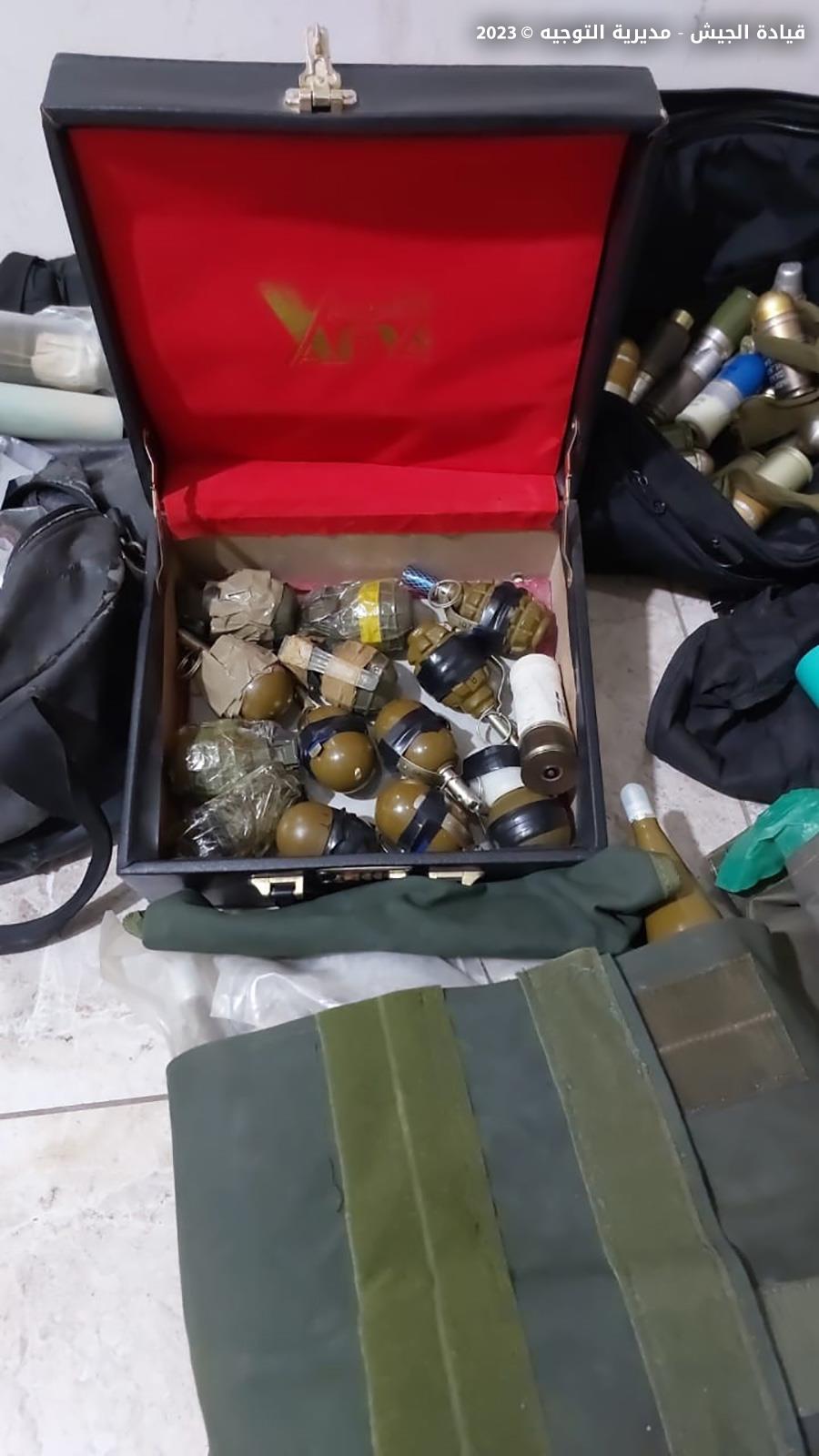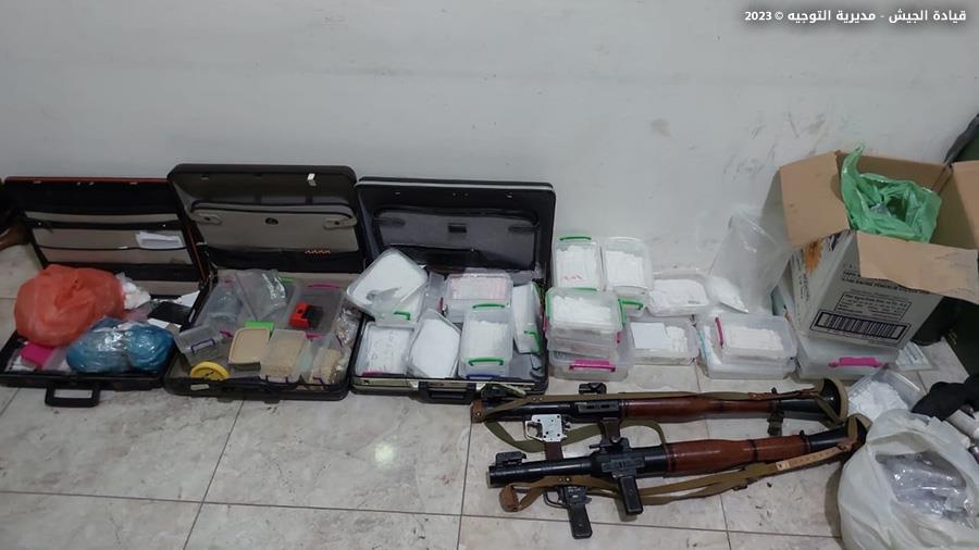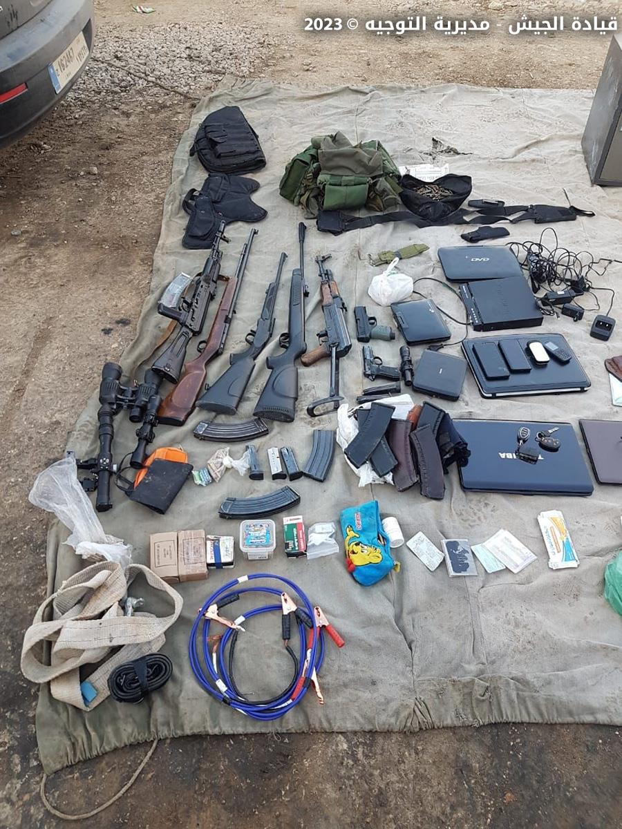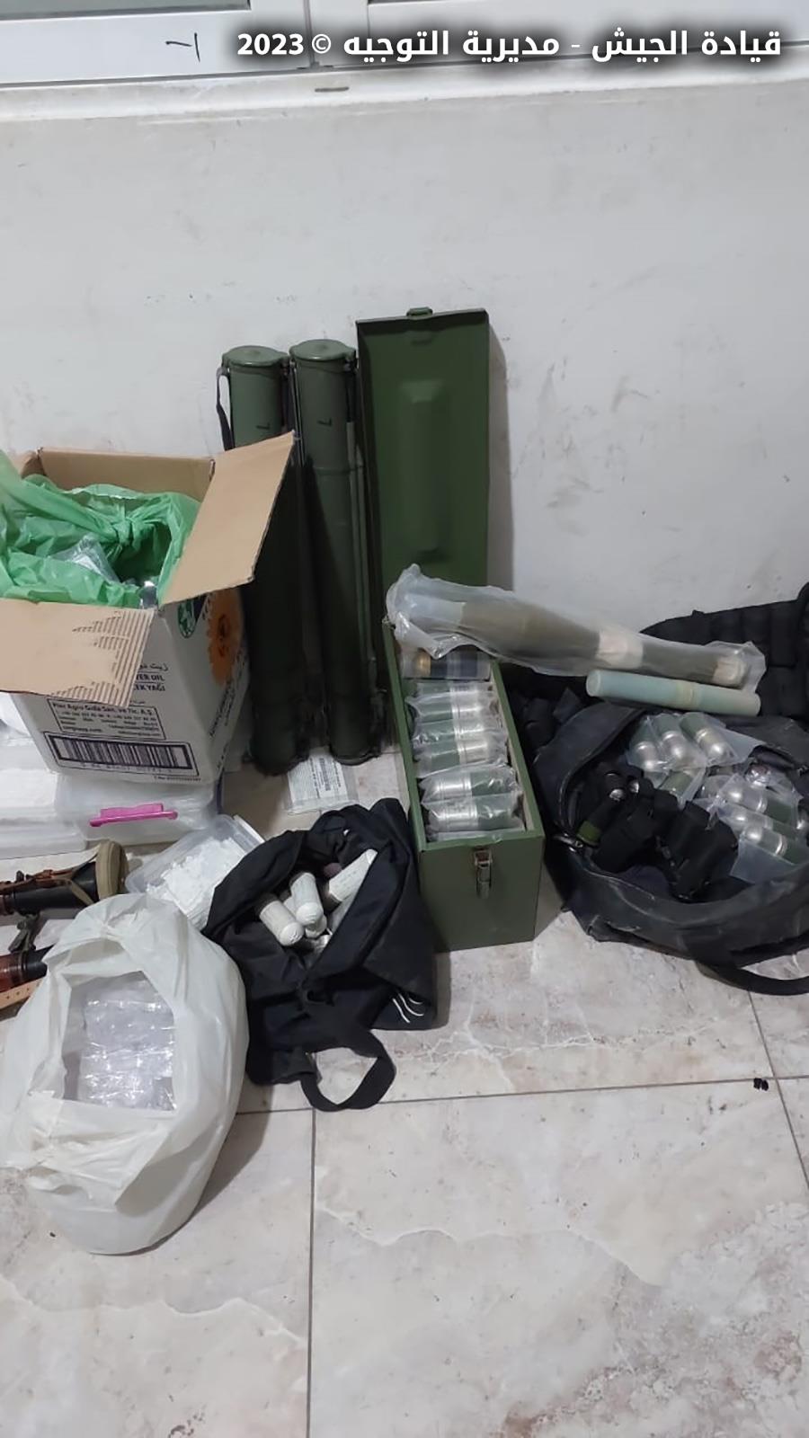 استكمالاً لعمليات الدهم التي بدأت بتاريخ ٢٠٢٣/٢/١٦ في بلدة حورتعلا ـــ البقاع، أوقفت وحدة من الجيش بمؤازرة دورية من مديرية المخابرات ١٠ مواطنين وسوريَّيْن اثنين، وضبطت كمية من المخدرات وعدداً من السيارات المسروقة، وقاذفَي آربي جي وقنابل يدوية بالإضافة إلى أسلحة وذخائر حربية وأعتدة عسكرية ولوحات سيارات مسروقة وأجهزة إلكترونية وخلوية.