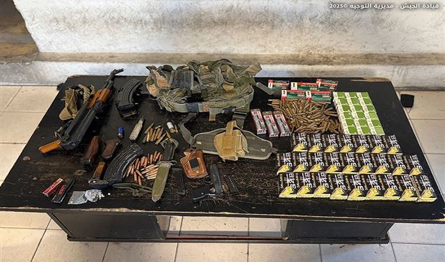 أعلنت قيادة الجيش – مديرية التوجيه، أن “وحداتها تواصل ملاحقة المطلوبين والمخلين بالأمن في مختلف المناطق اللبنانية، وفي هذا السياق دهمت وحدة تؤازرها دورية من مديرية المخابرات منازل متورطين في إشكال مسلح بتاريخ سابق، تخلله تبادل لإطلاق النار في بلدة بزال – عكار نتيجة خلافات شخصية، وأوقفت المواطنَين (ع.ع.) و(ع.م.)، وضبطت في حوزتهما سلاحًا حربيًّا وكمية من الذخائر”.