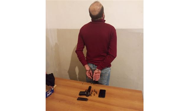 وقد ضُبط بحوزته مسدّس حربي وثماني طلقات صالحة للاستعمال.